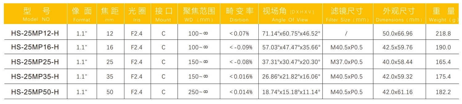>2500万像素的高解像力, MTF表现优秀,满足高清拍摄需求 >可兼容2/3"、1"、1.1"芯片,焦段涵盖12-50mm. >超低色散,实现优秀画面清晰度及均匀性 >优秀的分辨率和景深平衡 >大景深设计确保足够的可拍摄距离范围